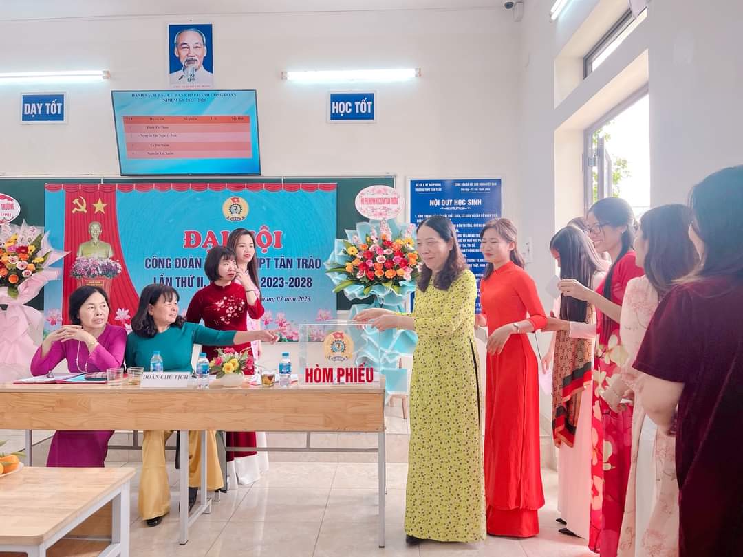 Thực hiện Điều lệ XII Công đoàn Việt Nam;  Kế hoạch số 59 ngày 06/05/2022 của Sở giáo dục đào tạo Hải Phòng và Công đoàn ngành giáo dục về việc phối hợp chỉ đạo tổ chức Đại hội Công đoàn các cấp tiến tới Đại hội Công đoàn ngành giáo dục lần thứ XIX, Đại hội XV công đoàn Thành phố, Đại hội 13 Công đoàn Việt Nam, nhiệm kỳ 2023-2028; Hướng dẫn số 16 ngày 06/09/2022 của Công đoàn ngành giáo dục về tổ chức Đại hội công đoàn cơ sở nhiệm kỳ 2023-2028;  Kế hoạch số 08 ngày 07 tháng 09 năm 2022 của Công đoàn Trường THPT Tân Trào và được sự đồng ý của Công đoàn ngành giáo dục, sáng ngày 06/03/2023 Trường THPT Tân Trào long trọng tổ chức Đại hội Công đoàn Trường lần thứ II, nhiệm kỳ 2023 - 2028. Đại hội trân trọng được đón tiếp đồng chí Trần Văn Thắng - Chủ tịch Công đoàn ngành tới dự và chỉ đạo.