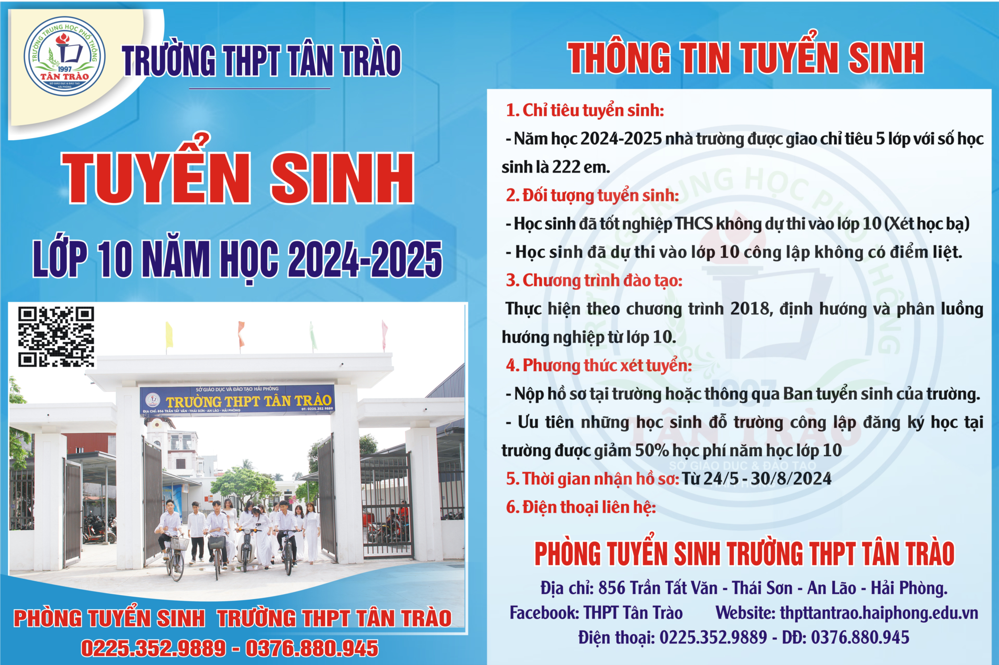 • Thông tin tuyển sinh lớp 10 trường THPT Tân Trào năm học 2024-2025