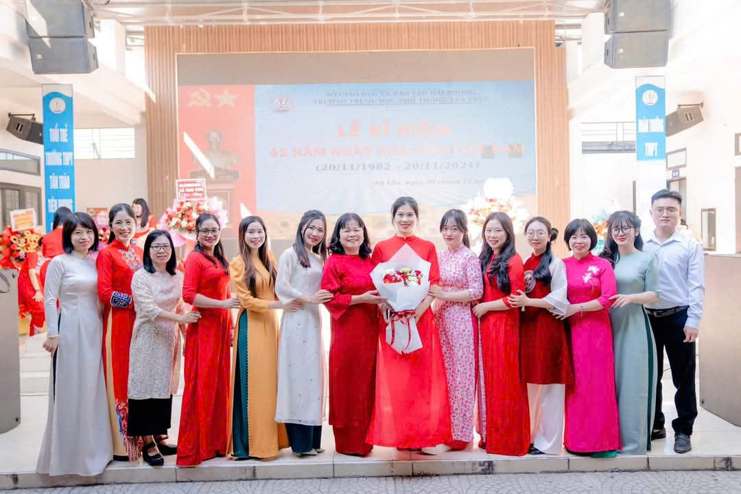 Lễ kỷ niệm cũng là dịp để các em học sinh bày tỏ tình cảm và sự biết ơn thầy cô. Những đóa hoa tươi thắm trao tận tay thầy cô cùng những lời chúc tốt đẹp là lời cảm ơn chân thành của học trò trường THPT Tân Trào tri ân công ơn dạy dỗ của các thầy cô giáo.